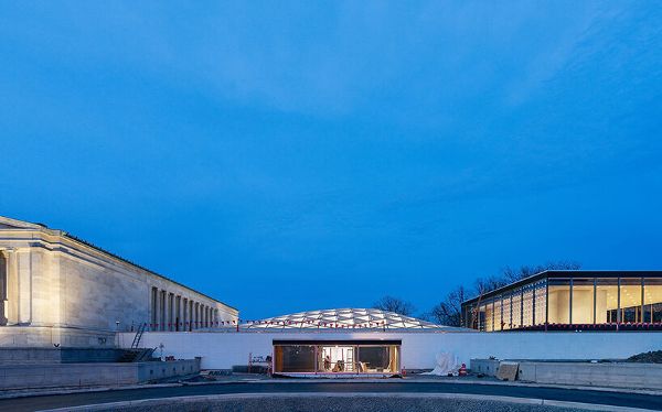 Common Sky 由 Studio Other Spaces 設計,在歷史博物館和特拉華公園之間建立了牢固的聯系。 受到布法羅的天氣模式和弗雷德里克·勞·奧姆斯特德郁郁蔥蔥的景觀的啟發,它利用非古典建筑元素塑造空間,同時尊重西摩·H·諾克斯大廈的原始現代主義設計。 共同天空的有機形態與周圍的樹木、道路、云彩和陽光相協調,與環境產生詩意的共鳴。