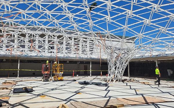 Studio Other Spaces (SOS) 由藝術家奧拉維爾·埃利亞松 (Olafur Eliasson) 和建筑師塞巴斯蒂安·貝曼 (Sebastian Behmann) 創立,推出了“Common Sky”,是個由玻璃和鏡子組成的天篷,包圍了紐約布法羅AKG藝術博物館Seymour H. Knox 大樓的庭院。這件藝術品為博物館的擴建增添了引人注目的元素,并與OMA領導的歷史悠久的校園正在進行的翻修工作無縫銜接。