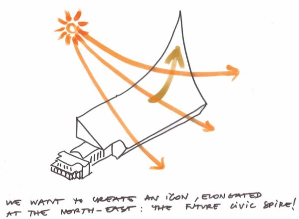 Phive項目旨在通過充滿活力的設計促進人與人之間的聯系,從而解決社會問題。為了實現這一目標,建筑師將重點放在最大限度地提高市政廳附近中央沿海道路的亮度和開放性上。建筑體量的設計遵循太陽的軌跡,確保濱海大道全年保持充足的光照。此外,設計還與場地的地理環境融為一體,充分利用了陽光、風和氣候等自然元素的優勢。南立面傾斜彎曲,創造出一個寬敞的公共空間,成為城市的新焦點。外墻由數百塊折疊板組成,既能隔熱又能濾光,營造出一種內外兼修的詩意氛圍。棋盤格狀的屋頂使廣場看起來像一個層疊的露天劇場,加強了與周圍環境的互動。