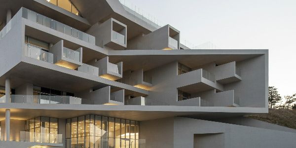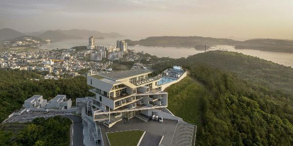 由IDMM建筑事務所設計的“港口堡壘”位于韓國多爾山島白草吉的高原上。該建筑位于海拔100米的高山上,占地面積9936平方米,從自然景觀中脫穎而出。向西北方眺望,麗水市優雅地環繞著鐘吾山、瑪拉伊山和風景優美的座山公園,勾勒出一幅如詩如畫的海岸全景圖。西南方向的城市天際線與瀨久治村和南海形成迷人的對比。