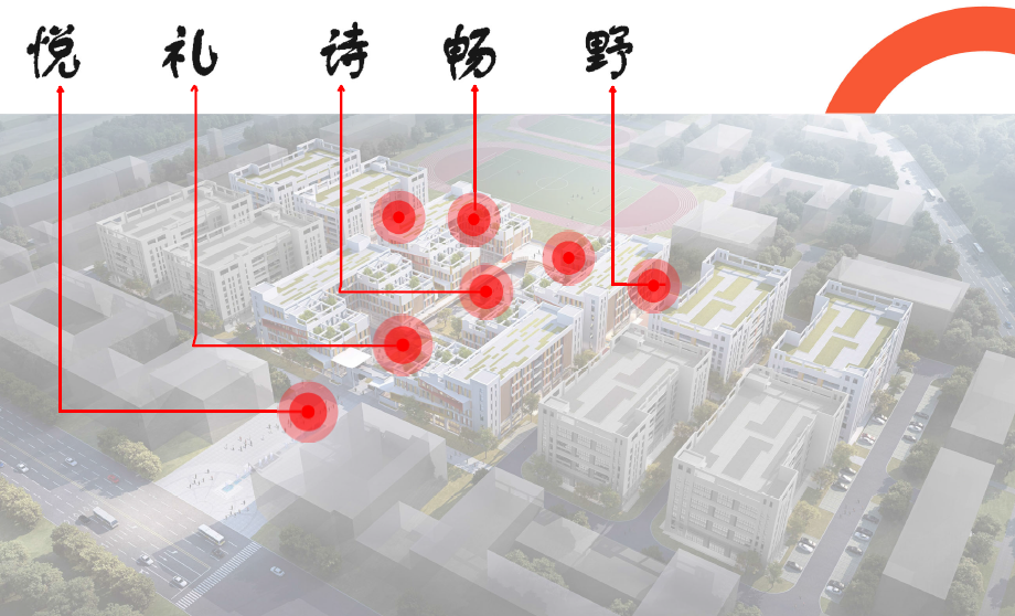 In terms of space processing, through the creation of landscape space and architectural enclosed space, the change of space rhythm is dealt with in the inheritance of ritual culture, and the transformation of industrial atmosphere to art academy atmosphere is realized.