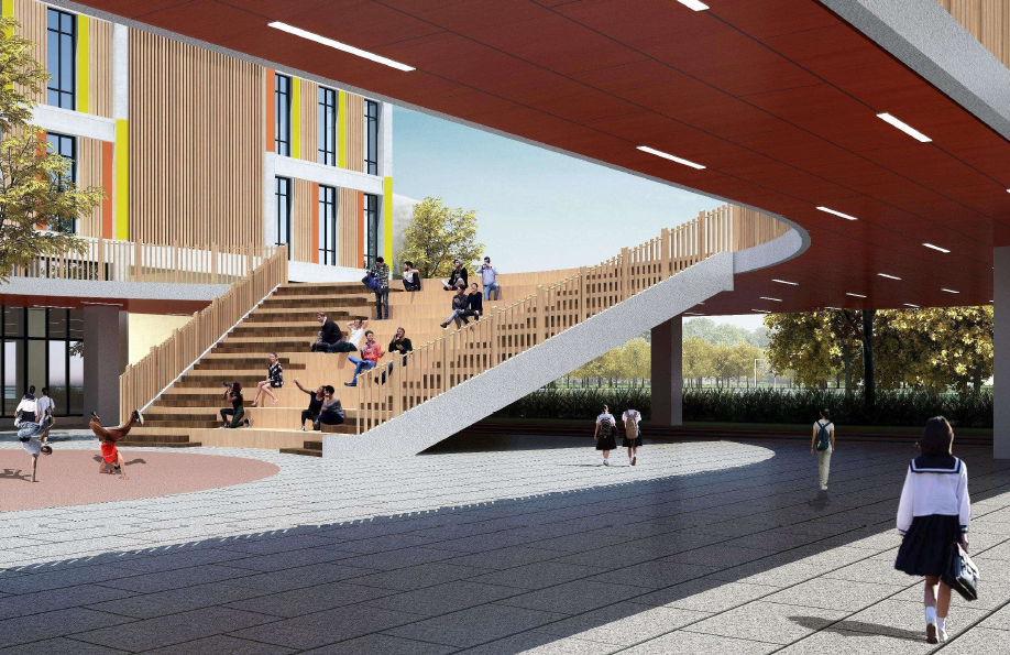 In terms of space processing of educational activities, the design creates more shared Spaces, such as the outdoor landscape stage with stairs, so that students can feel the autonomy and freedom of learning.The design strives to create a ubiquitous classroom from "boundary" to "boundless" as the starting point. Through the sufficiency of spaceUse it to create multi-dimensional learning, life and interaction space, and create a "pan classroom" with classroom everywhere.