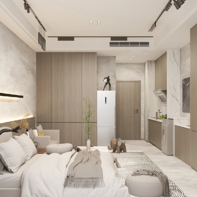 For the unavoidable constructional columns and partition walls in the room, the scheme industry has carried out the treatment of "cabinet packing column" and "wall shielding column" through the interior decoration technique, so as to make the internal space of the room complete.