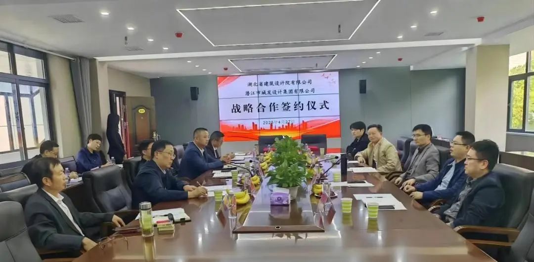 座談會上,雙方共同回顧了前期良好的合作基礎。同時,雙方聚焦創新合作新模式,圍繞工程前期咨詢、工程設計、新型業務設計與管理、技術培養、人才交流、數字化轉型等領域的合作展開深入交流。章華對劉林一行到訪表示歡迎,并對湖北省建筑設計院在聯投集團的領導下取得的豐碩業績和展現的美好前景感到振奮。他表示,湖北省建筑設計院與潛江市城發集團是有深厚緣分的一家人,接下來我們雙方要進一步深入了解,擴大合作范圍和模式,務實地深化合作機制,讓雙方在合作之后都能更上一層樓。劉林對潛江市城發集團的精心組織和悉心安排表示感謝,劉林表示接下來雙方要加深了解、增進友誼、加強合作、互利共贏,同時祝愿雙方在未來的合作中取得豐碩成果。座談會上雙方還就其他問題展開熱烈交流,座談會后湖北省建筑設計院與潛江市城發設計集團舉行了雙方戰略合作協議簽約儀式。