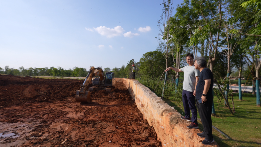 李保峰工作室一天內(nèi)轉(zhuǎn)戰(zhàn)多個(gè)項(xiàng)目現(xiàn)場(chǎng)開(kāi)展踏勘工作。在李教授的帶領(lǐng)下,室內(nèi)設(shè)計(jì)團(tuán)隊(duì)對(duì)烘干車(chē)間現(xiàn)場(chǎng)與設(shè)計(jì)圖紙進(jìn)行全面細(xì)致的對(duì)比,結(jié)合場(chǎng)地實(shí)際情況對(duì)設(shè)計(jì)圖紙進(jìn)行優(yōu)化。下午3點(diǎn),在戶外溫度接近40℃的鄂州紅蓮湖,武漢新城體育公園項(xiàng)目工地現(xiàn)場(chǎng),工作室設(shè)計(jì)人員踏上廢棄擋土墻,站在高點(diǎn),頂著烈日炙烤,同施工現(xiàn)場(chǎng)工作人員一邊了解情況,一邊交流施工技術(shù)。
