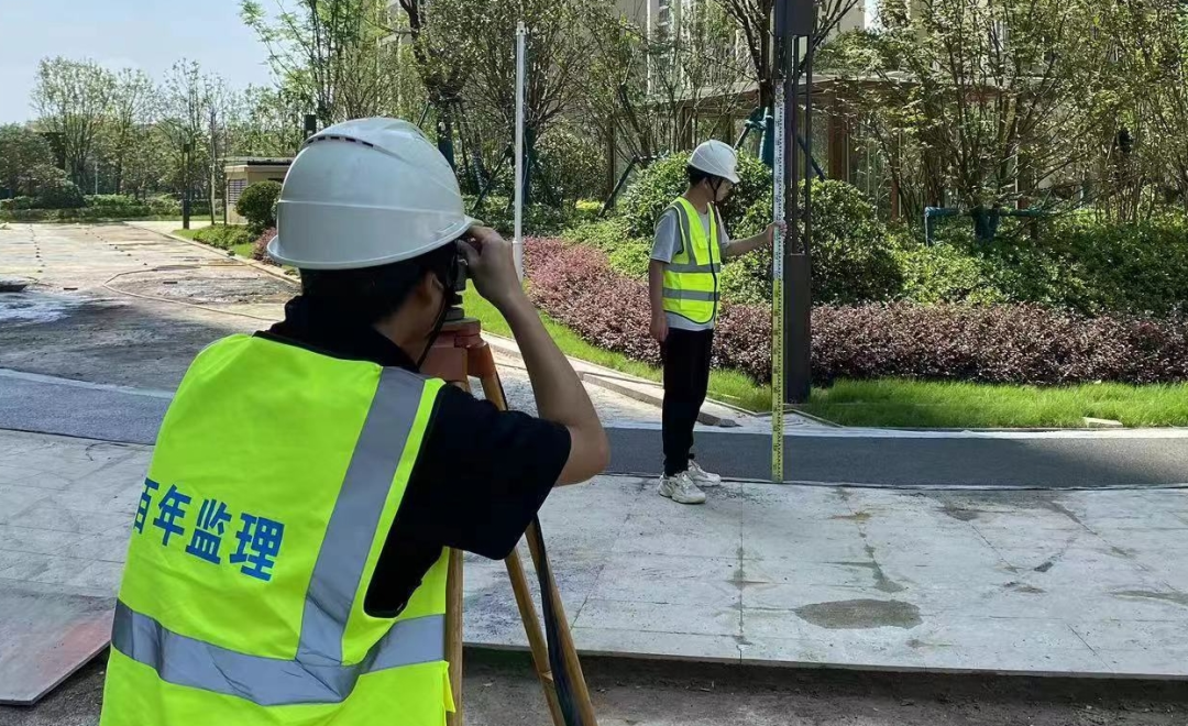 現(xiàn)場(chǎng)監(jiān)理人員在高溫天氣下正在對(duì)地面石材鋪裝平整度進(jìn)行復(fù)核測(cè)量,確認(rèn)道路平整,達(dá)到驗(yàn)收標(biāo)準(zhǔn),以保障工程進(jìn)度順利,按時(shí)進(jìn)行交付。這只是監(jiān)理人員日常工作的一個(gè)縮影。每一個(gè)項(xiàng)目現(xiàn)場(chǎng),是戰(zhàn)場(chǎng)、是陣地,只有付出辛勤的汗水,才能打造優(yōu)質(zhì)安全的工程。