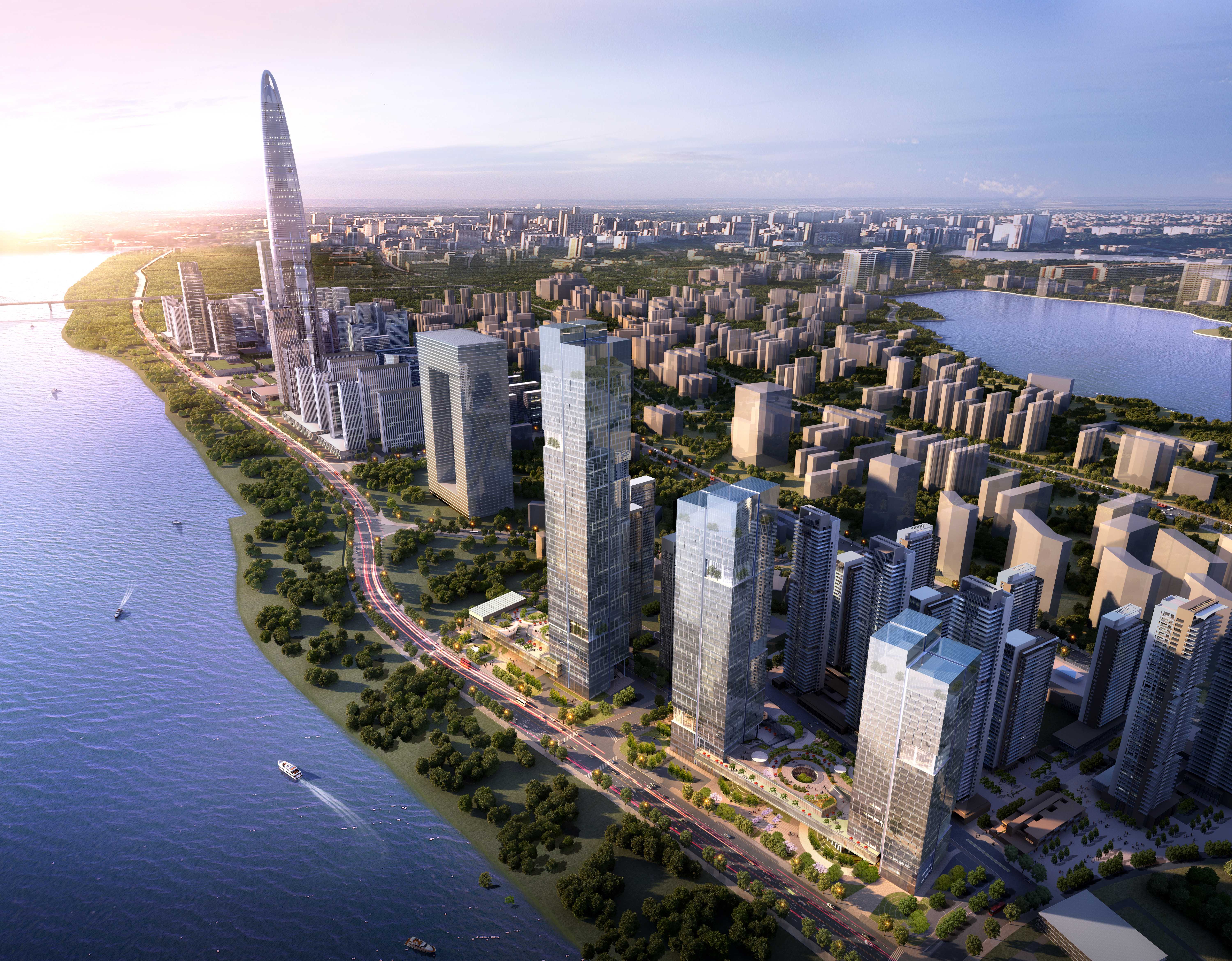 本工程地處武昌濱江地區最為顯要的區域,位于城市內環線中心區域。本工程占地建筑面積為615367.8㎡,幕墻面積116400㎡。建筑功能為住宅,共有11棟高層超、高層住宅樓,分別為A1、A2、A3、B1、B2、C1、C2、C3、D1、D2、D3號樓。本工程主要幕墻系統有豎隱橫明框架式玻璃幕墻、鋁合金背栓式干掛石材幕墻、鋁板幕墻,點支撐玻璃欄桿、豎向格柵百葉、陶土板幕墻、鋁板雨棚等。